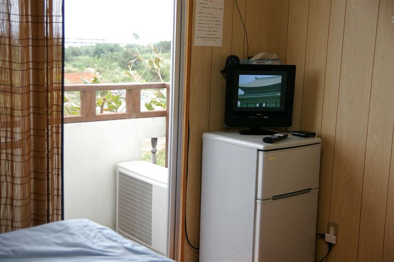 松本先生知道我是來跑那霸馬拉松的,而且還只用一天就從那霸市騎著腳踏車到瀨底島,對我佩服不已(噢...他還不知道我是用一隻腳騎來的呢),忙著把我的腳踏車牽到屋沿下。然後,我訂的其實是最便宜的禢禢米的房間而已,松本先生說他的套房還有剩,要我住到套房去....太感動了..