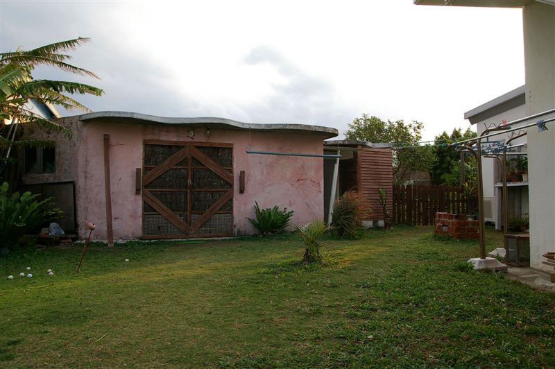 一樓有很大的庭園,粉紅色的房子是工作室。