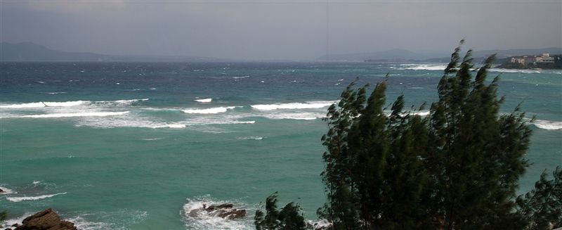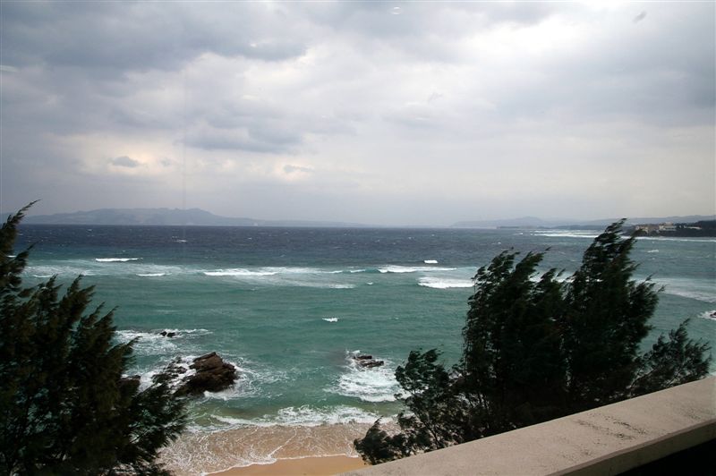 從海浪和樹可以看出外面的風真的很大,而且,是逆風呀。真想賴在這裡休息。