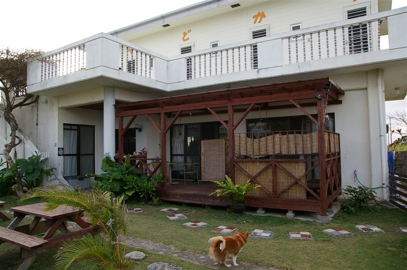和A-chan玩了一會兒,來住宿的日本情侶也下來了,男生也是來參加那霸馬拉松,不一樣的是他們是開車來的,但是一樣找不到民宿,所以是松本先生去接他們來的。
