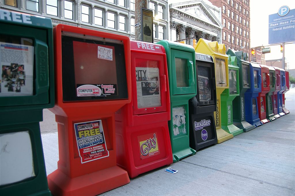 連報紙自動販賣機都很有特色,一排造型顏色都很有特色,超可愛。