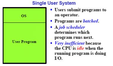 - Batch systems allowed automatic job sequencing by a resident operating system.
