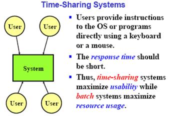 - The objective of time-sharing is to switch the CPU among processes so frequently that users can interact with each program while it is running.