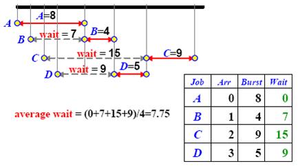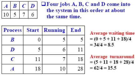 - Thus, the processes in the ready queue are sorted in CPU burst length.