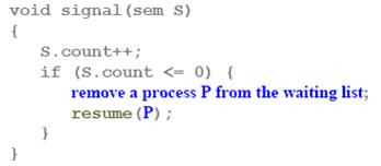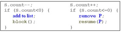 • This is because processes are added to (resp., removed from) the waiting list only if the counter value is < 0 (resp., <= 0)