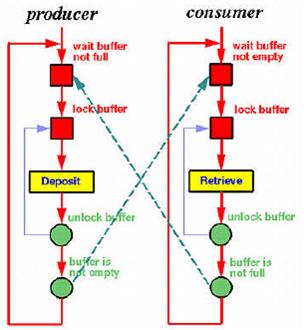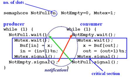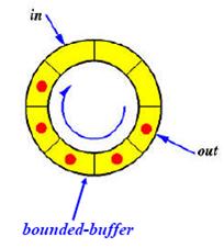 • A producer deposits info into Buf[in] and a consumer retrieves info from Buf[out].