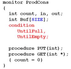 • A monitor is a mini-OS with monitor procedures as system calls.