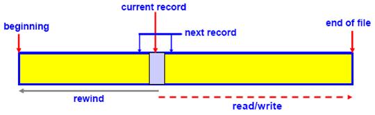 - If p is the file pointer, the next record to be accessed is either p+1 or p-1 (i.e., backspace).