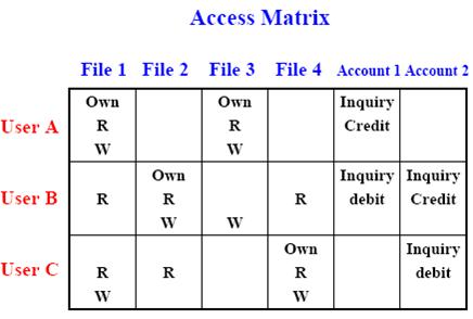- When a user makes a request to access a file or a directory, his/her identity is compared against the information stored in the access matrix.