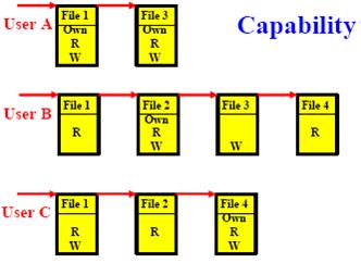 - The matrix can be decomposed into columns (files), yielding access-control lists (ACL).